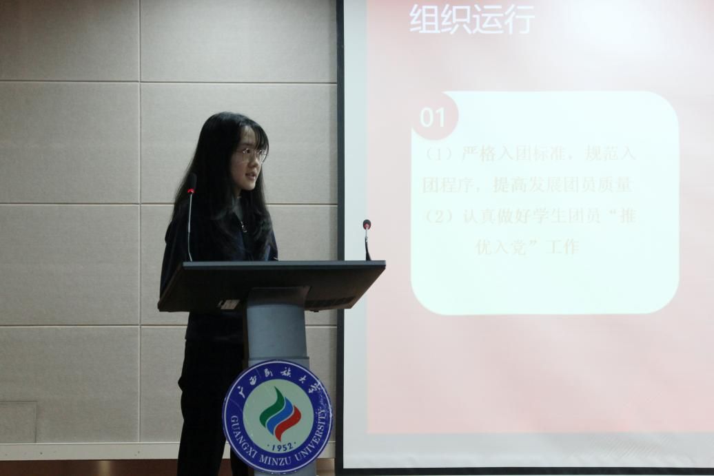 大会伊始,全明霞结合自身工作实践,围绕团支部活力提升展开分享,从思想引领、活动组织、支部凝聚等方面传递实用经验,为在场团支书提供了可借鉴的工作思路。随后,各班级团支书依次作述职汇报,全面复盘支部基本情况、年度工作开展详情及班级活动参与成效,既展示了支部建设中的亮点成果,也坦诚剖析了工作短板,并结合实际明确了改进思路与未来规划。